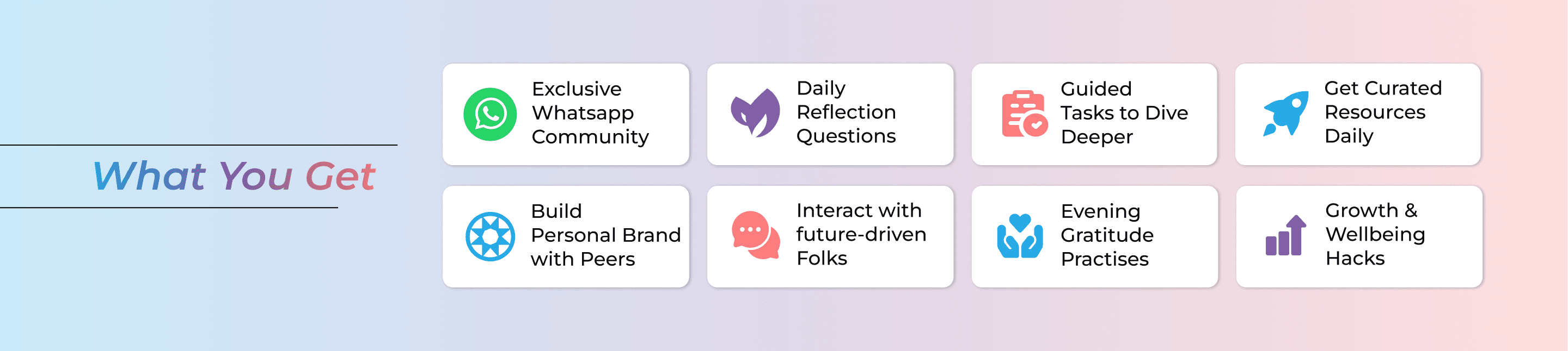 The focus on balanced growth was refreshing. It wasnโt just careerโit helped me think about clarity, wellbeing, and avoiding burnout